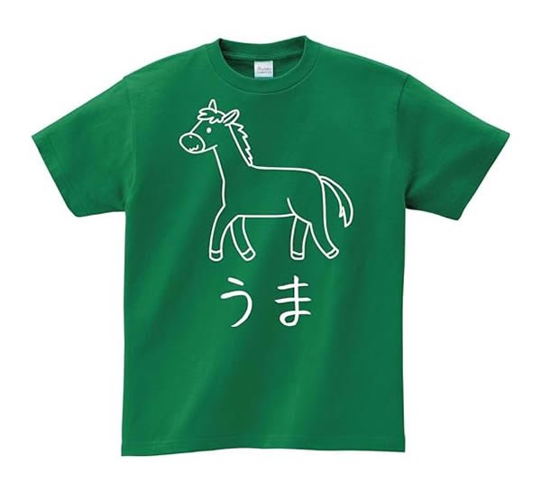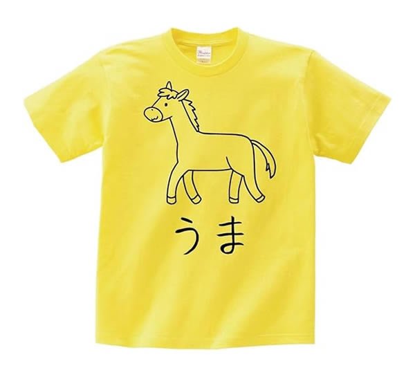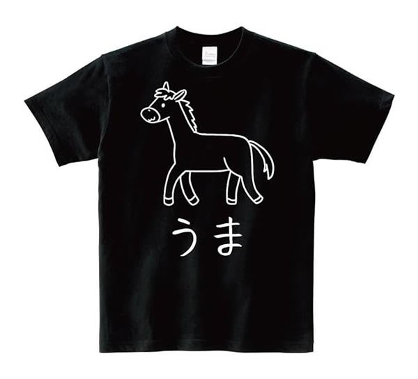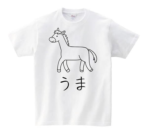 かわいい馬(うま)のイラスト入り 白色 ホワイト 半袖Tシャツ 2026干支 午年 うまどし
