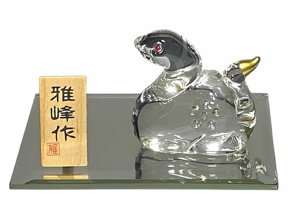 ビードロ 金彩 ガラス 巳 蛇 へび 置物 2025年 干支 十二支 台付