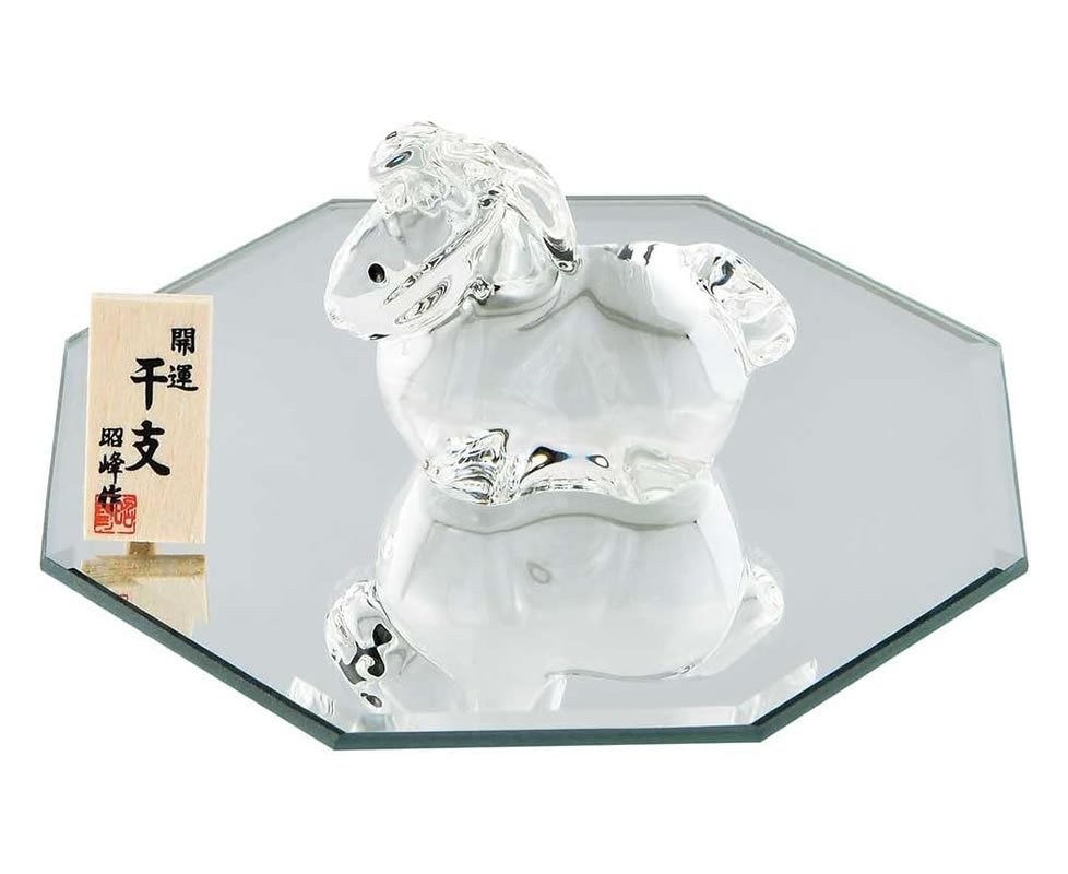 ガラス製 午 馬 うま 置物 干支飾り 2026年 開運 八角形 ミラー 鏡 台付き