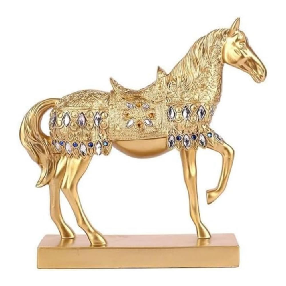馬 置物 風水置物 縁起物 開運 金運アップ 商売繁盛 成功祈願 樹脂製 彫刻 工芸品 インテリア 飾り物 ギフト 贈り物 吉祥アイテム 家庭 会社 玄関 デコレーション (ゴールド) [並行輸入品]