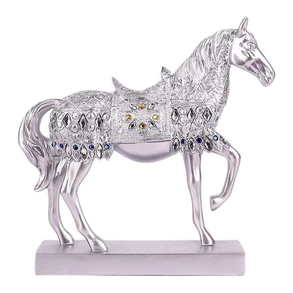 馬 置物 風水置物 縁起物 開運 金運アップ 商売繁盛 成功祈願 樹脂製 彫刻 工芸品 インテリア 飾り物 ギフト 贈り物 吉祥アイテム 家庭 会社 玄関 デコレーション (シルバー) [並行輸入品]