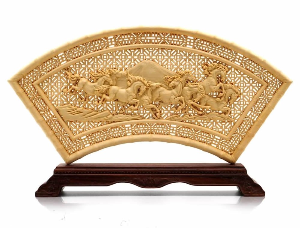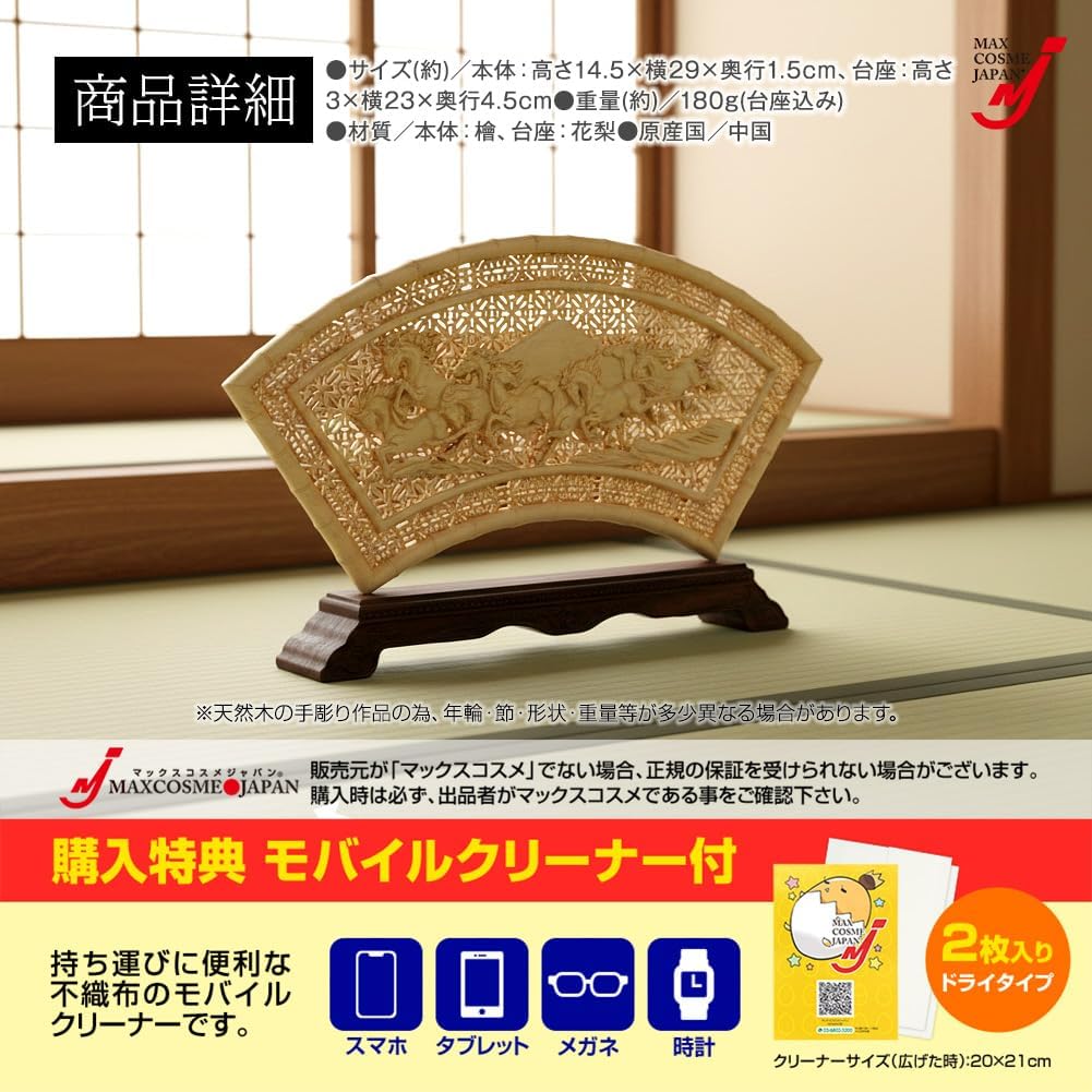 九頭馬 置物 檜 干支 午 工芸品 商売繁盛 夫婦円満 縁起物 台座付 正規品 オリジナルクリーナー付