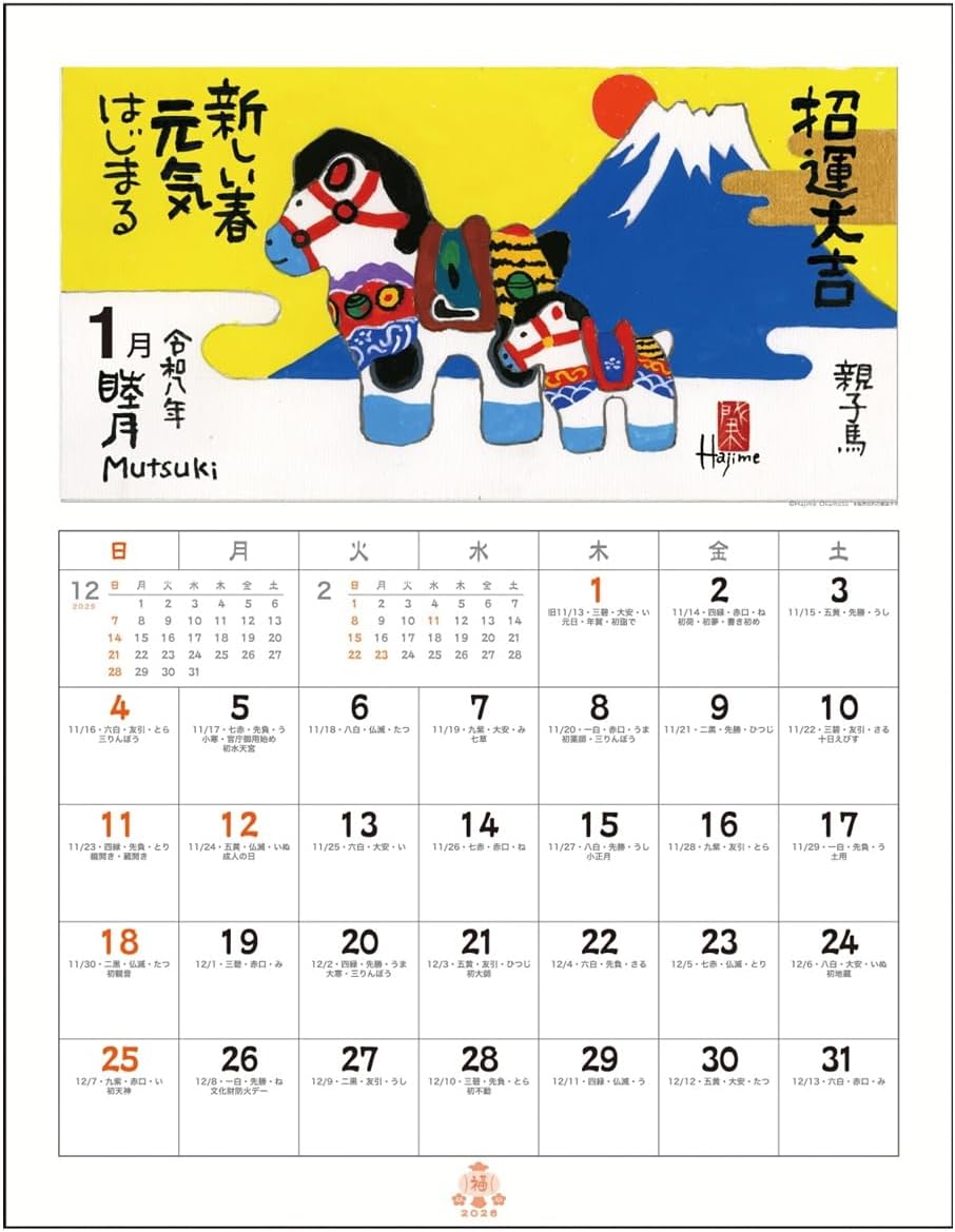 岡本肇先生の壁掛けアート・カレンダー『福が福呼ぶ 福暦カレンダー』で、幸運を引き寄せて、素敵な2026年(令和8年)をお過ごしください。