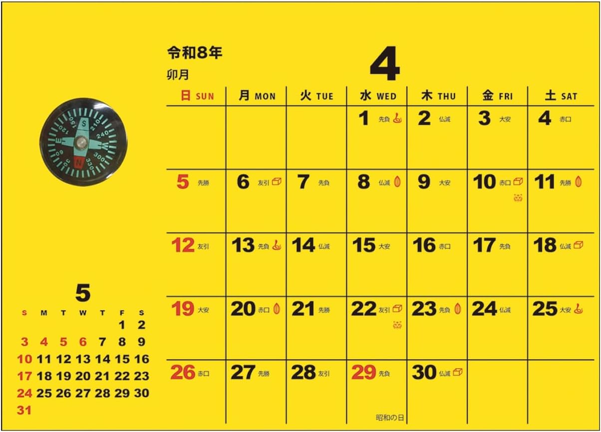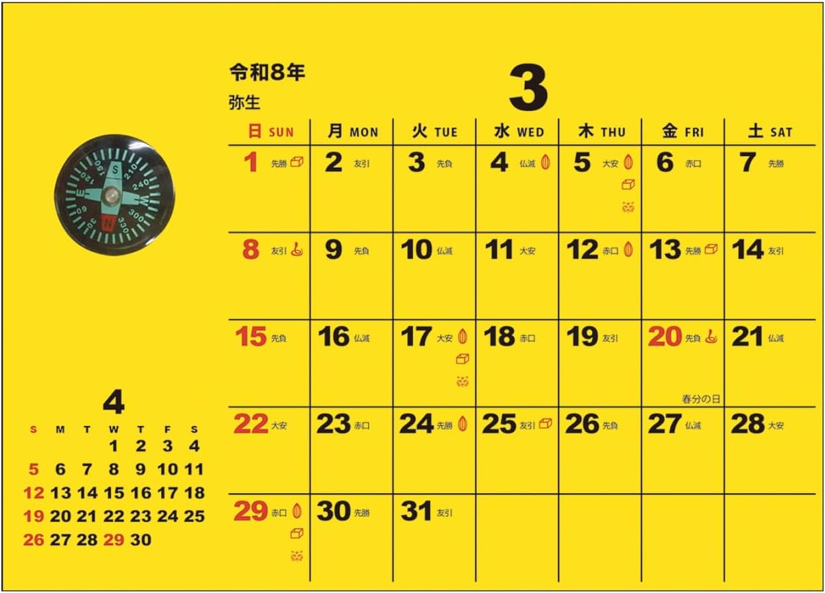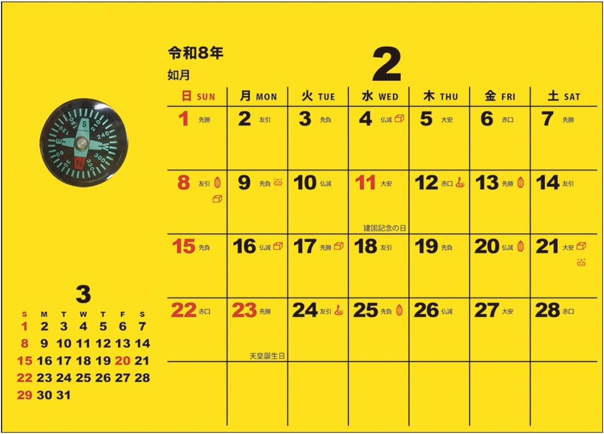 2026年 最強金運 カレンダー 卓上 黄色 金運アップ 方位磁石付
