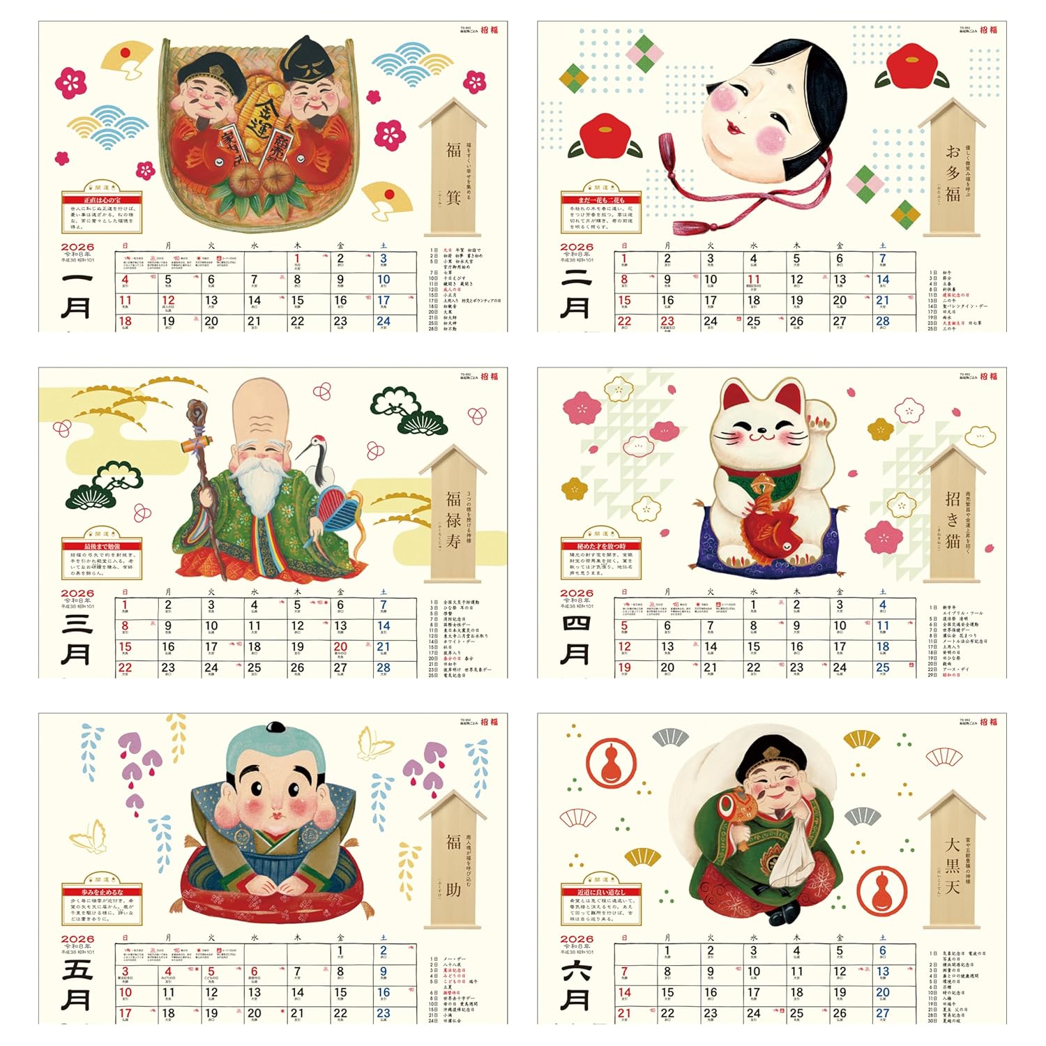 2026年 日本の縁起物ごよみ カレンダー 壁掛け 開運 招福 日本の縁起物カレンダー