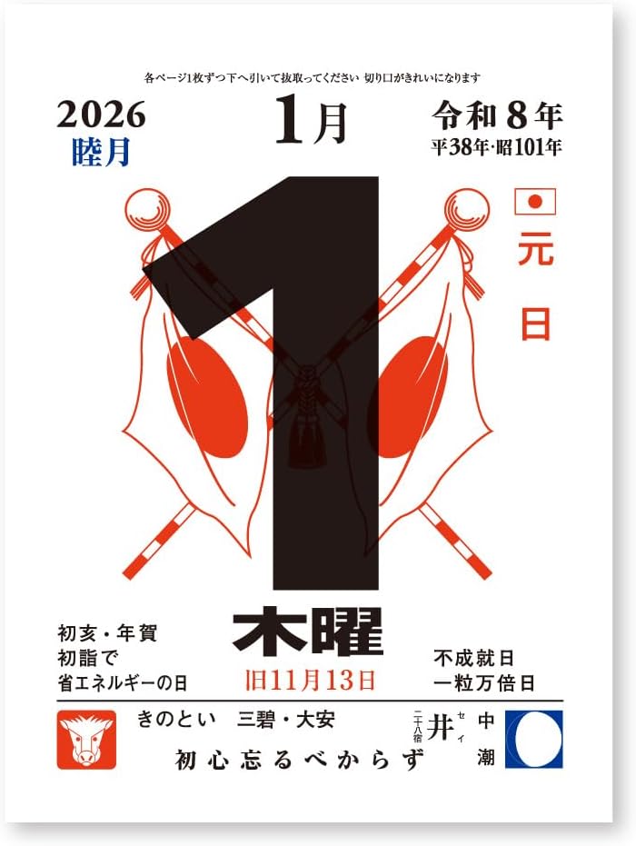 新日本カレンダー 2026年 カレンダー 日めくり 午台紙付日めくりカレンダー(岡本肇)(4号) 134×99mm NK8811