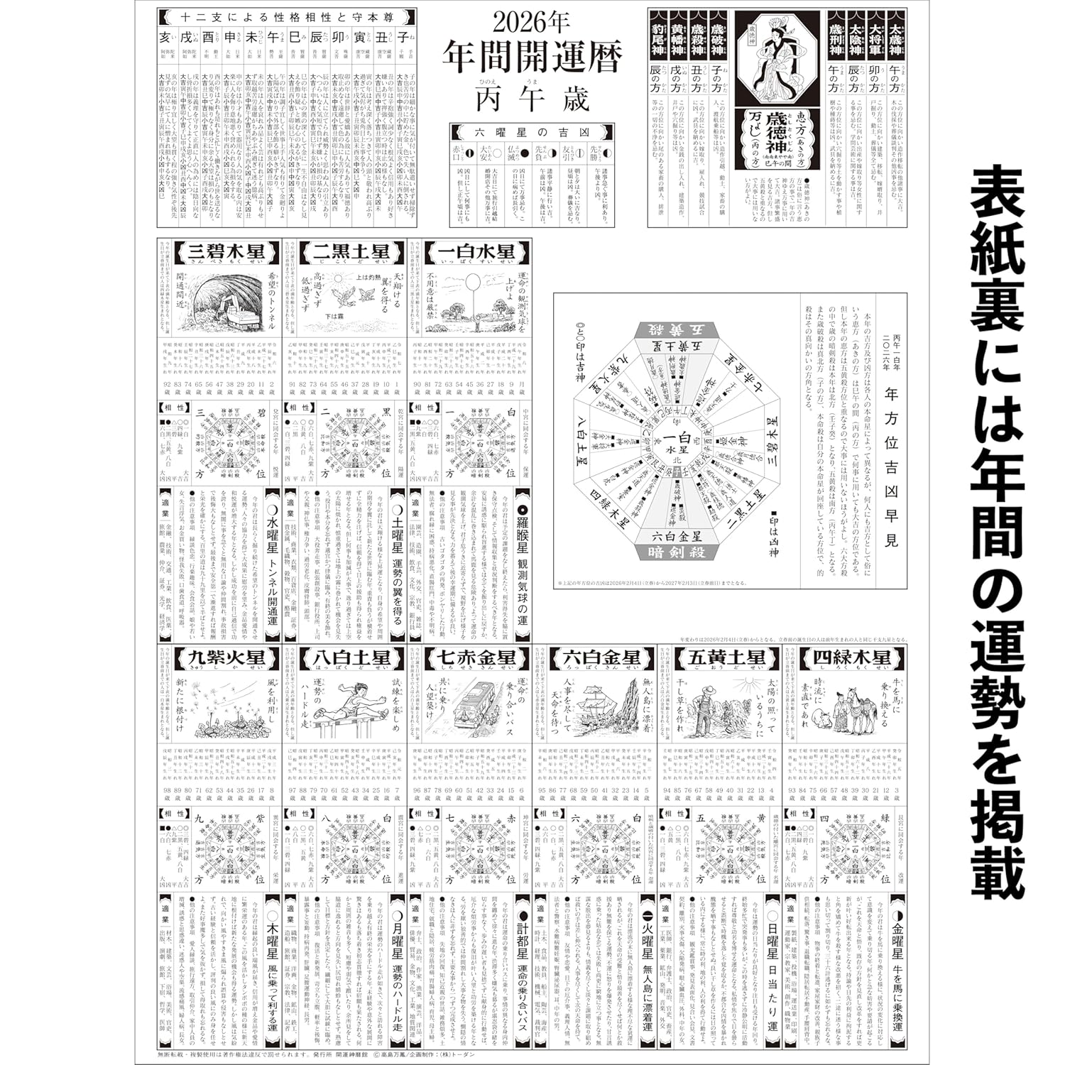 カレンダーの表紙裏には、2026年の丙午(ひのえうま)歳の年間運勢が掲載されています。