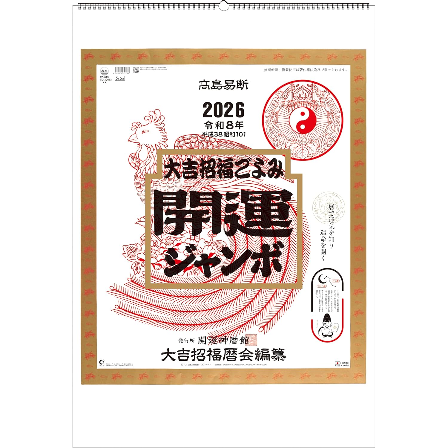 トーダン 2026年 カレンダー 壁掛け 開運ジャンボ(年間開運暦付) 75.6 x 51.5cm TD-30613 / 大吉招福ごよみ 高島易断 カレンダー – ウォールカレンダー, 2025/6/1