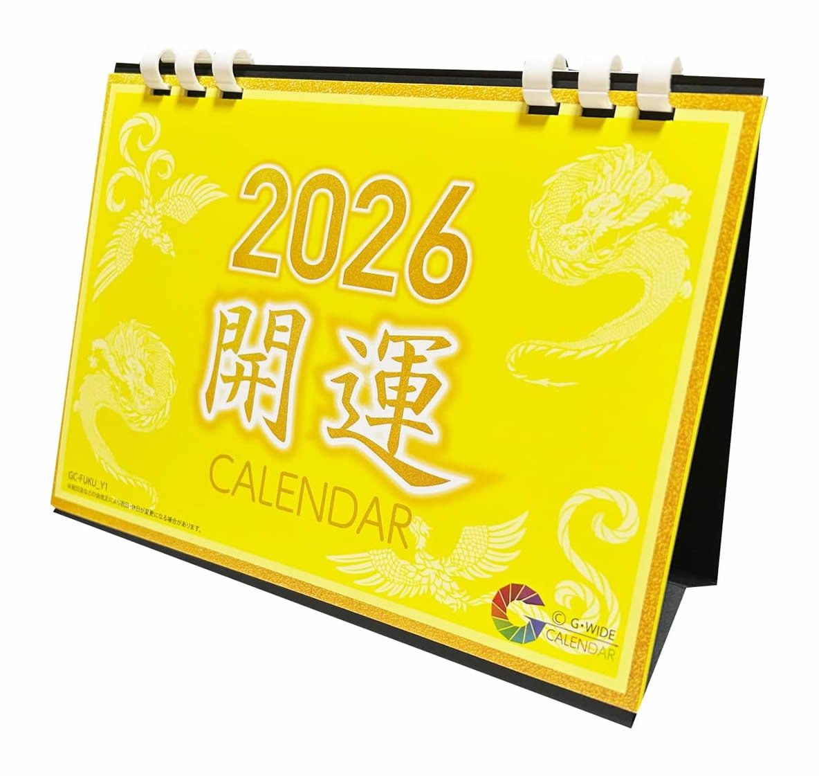 2026年1月始まり エコ開運卓上カレンダー GC-FUKU-YELLOW 龍(竜・辰)・鳳凰 黄 開運シリーズ 一粒万倍日 天赦日 天恩日 己巳の日 開運招福 風水 金運 文房具