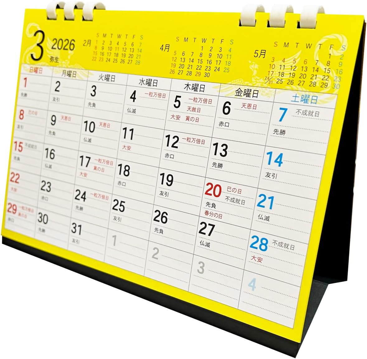 2026年 開運 卓上 カレンダー 黄色 エコ 龍 鳳凰 風水 金運 一粒万倍日 天赦日 天恩日 己巳の日