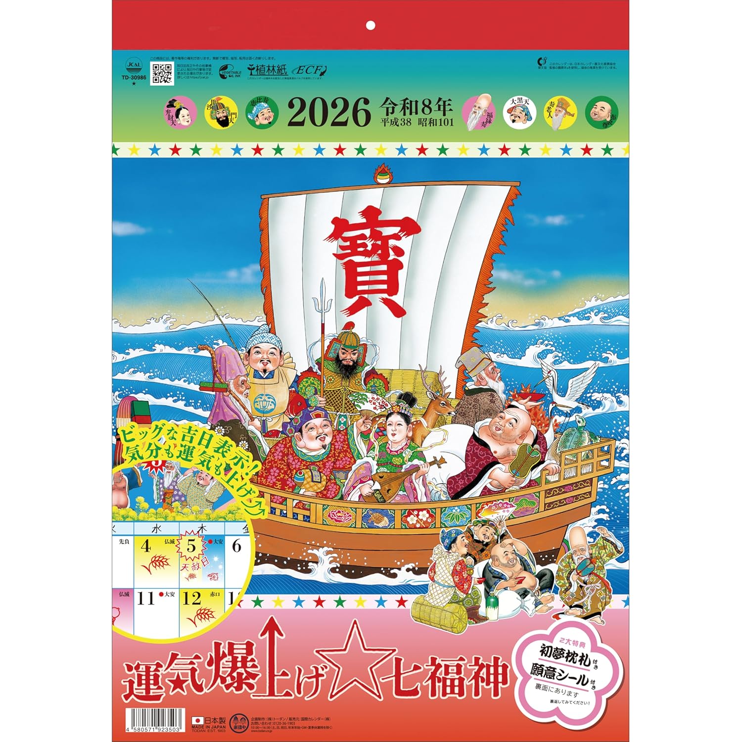 トーダン 2026年 カレンダー 壁掛け 運気爆上げ☆七福神 37.3 x 26cm TD-30986 カレンダー – ウォールカレンダー, 2025/6/1