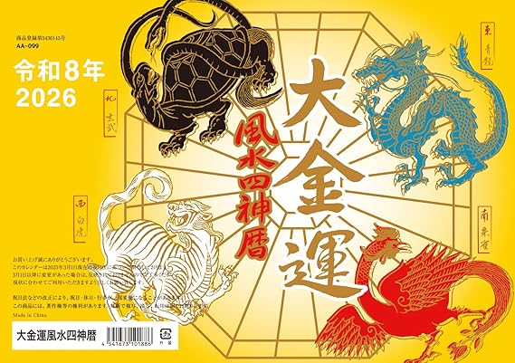 卓上タイプの『大金運 風水 四神暦カレンダー』で、2026年(令和8年)の運気アップを掴み取りましょう!